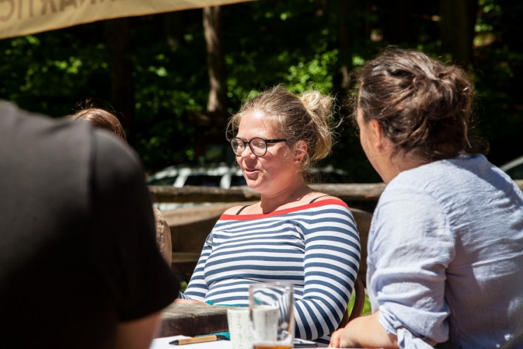 V centru/Im Zentrum Zdeňkou Morávkovou. Zbytek dne byl pracovní, intenzivní, věnovaný rozvoji organizací. Skupina Začínáme spolupráci má úžasný potenciál posouvat své záměry dál a pracovat na profesionalizaci. Do programu jsme poprvé zařadili workshop metodou „mastermind“, díky kterému jsme upevnili princip networkingu a poskytování zpětných vazeb. Díky otevřenosti a upřímnosti všech členů získal každý podnětné reflexe pro řešení překážek a bariér ve fungování svých kulturních organizací. Závěrem bylo ujasnění potřeb a krátkodobých cílů, které jsou pro management v současném dynamickém prostředí 21. století klíčové.