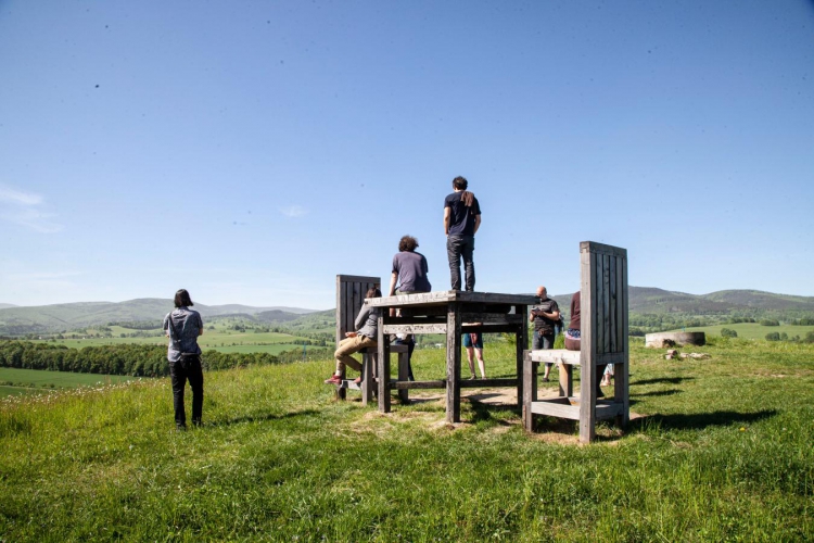 Poznali jsme i okolní krásy přírody a vydali se k Čertovým kazatelnám a poslední den vyrazili za kulturním odkazem do Jeseníku. Zastavení na Lánském vrchu, který oživila místní umělecká a architektonická skupina REZ landartem v podobě obřího stolu a židlí, nám poskytlo výhled do širého okolí až na Praděd. Kurátorka Lucie Štůlová Vobořilová spolu s Terezou Slovákovou nás provedly